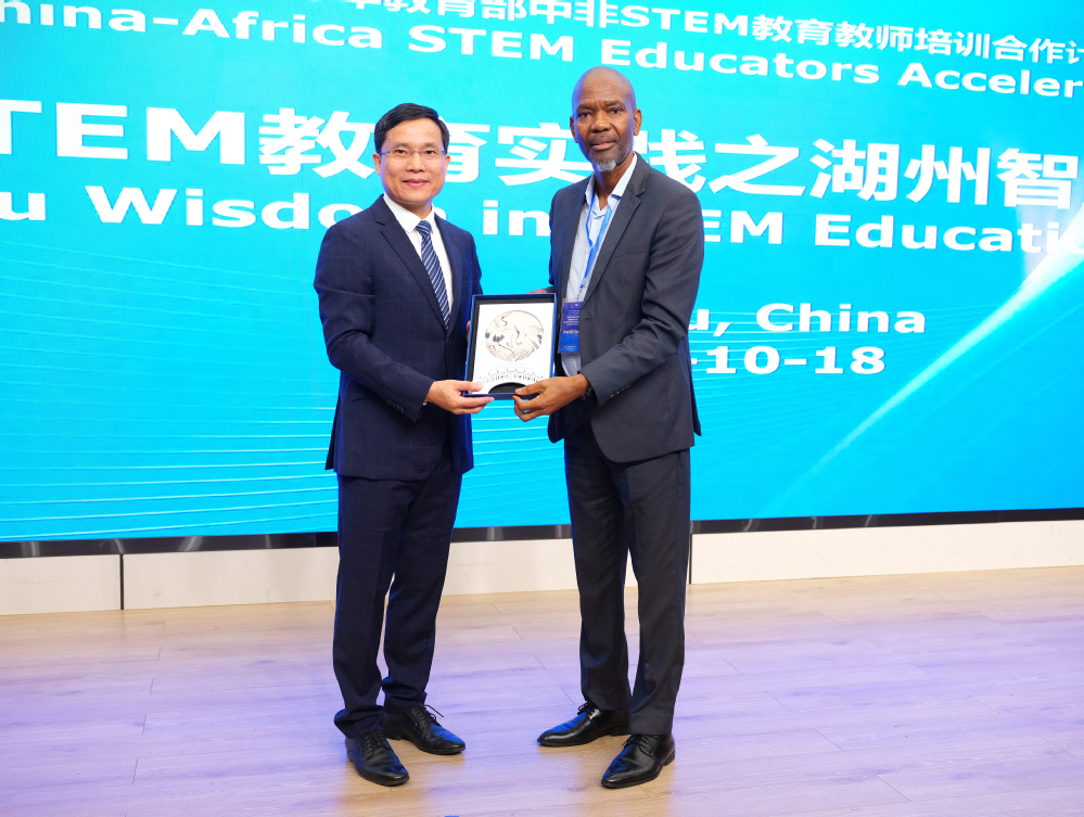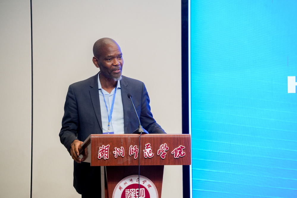 南非基础教育部数学、科学和技术司司长阿布拉姆·塞利基·特拉巴内作为非洲国家代表致辞,诚挚表达了对中国湖州地区经济、人文、教育、文化、基础设施等各方面的赞赏和学习期待,感谢湖州教育界同行热情分享STEM教育方面的丰硕成果与智慧。