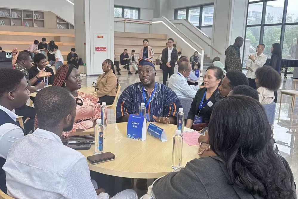 中午,加纳、南非、坦桑尼亚、乌干达、埃塞俄比亚、科特迪瓦、赞比亚7个国家教育部行政官员在我校国际交流与合作处负责人陪同下,会见了各自国家在我校就读的留学生代表。