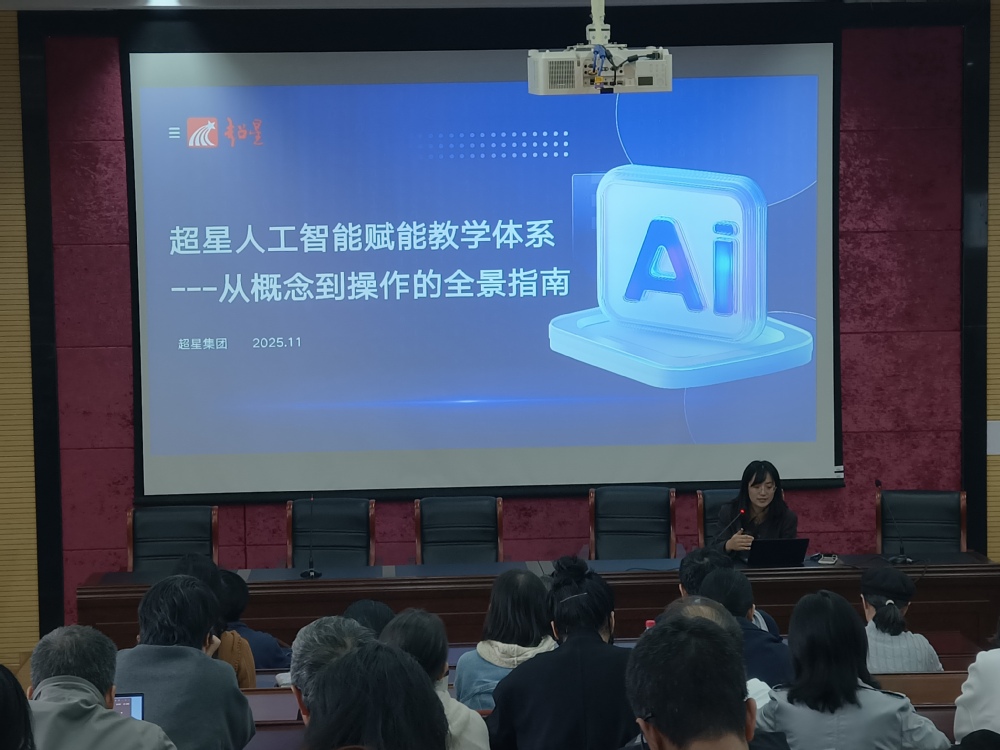 会上,超星学习通平台的培训专员徐老师为大家重点介绍了自主开发的教育大模型平台。该平台结合Deepseek工具,每周迭代新功能,同时解读国家、省级项目评审动态,为教师拆解平台应用与课程建设思路。