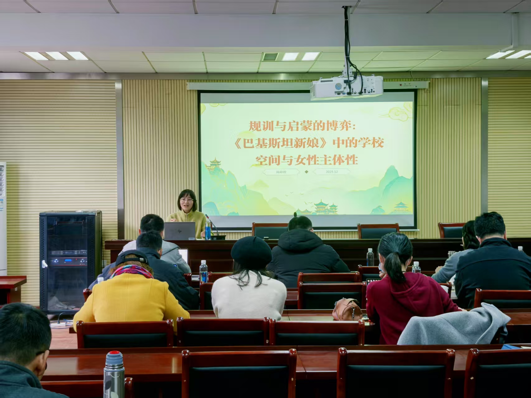 讲座主题为“循师问道:我的科研入门与成长之路”。讲座伊始,陈婷婷以自身博士求学经历为切入点,围绕导师指导下的学术成长路径展开阐述:初入科研领域,先掌握文献检索与提炼的方法,逐步构建学术认知并产出阶段性成果;继而借由针对性训练锤炼思辨能力、培育问题意识,夯实学术写作规范。她强调,熟练掌握论文撰写逻辑与实操技巧,形成论证严谨、论据扎实、层层递进的学术表达尤为重要。为具象化整个科研逻辑,陈婷婷结合论文“规训与启蒙的博弈:《巴基斯坦新娘》中的学校空间与女性主体性”这一具体案例,以西瓦多的《巴基斯坦新娘》为研究文本,运用前述学术方法,融合列斐伏尔空间生产理论与女性主义批评方法,剖析巴基斯坦乡村女性在学校空间中的双重生存境遇。
