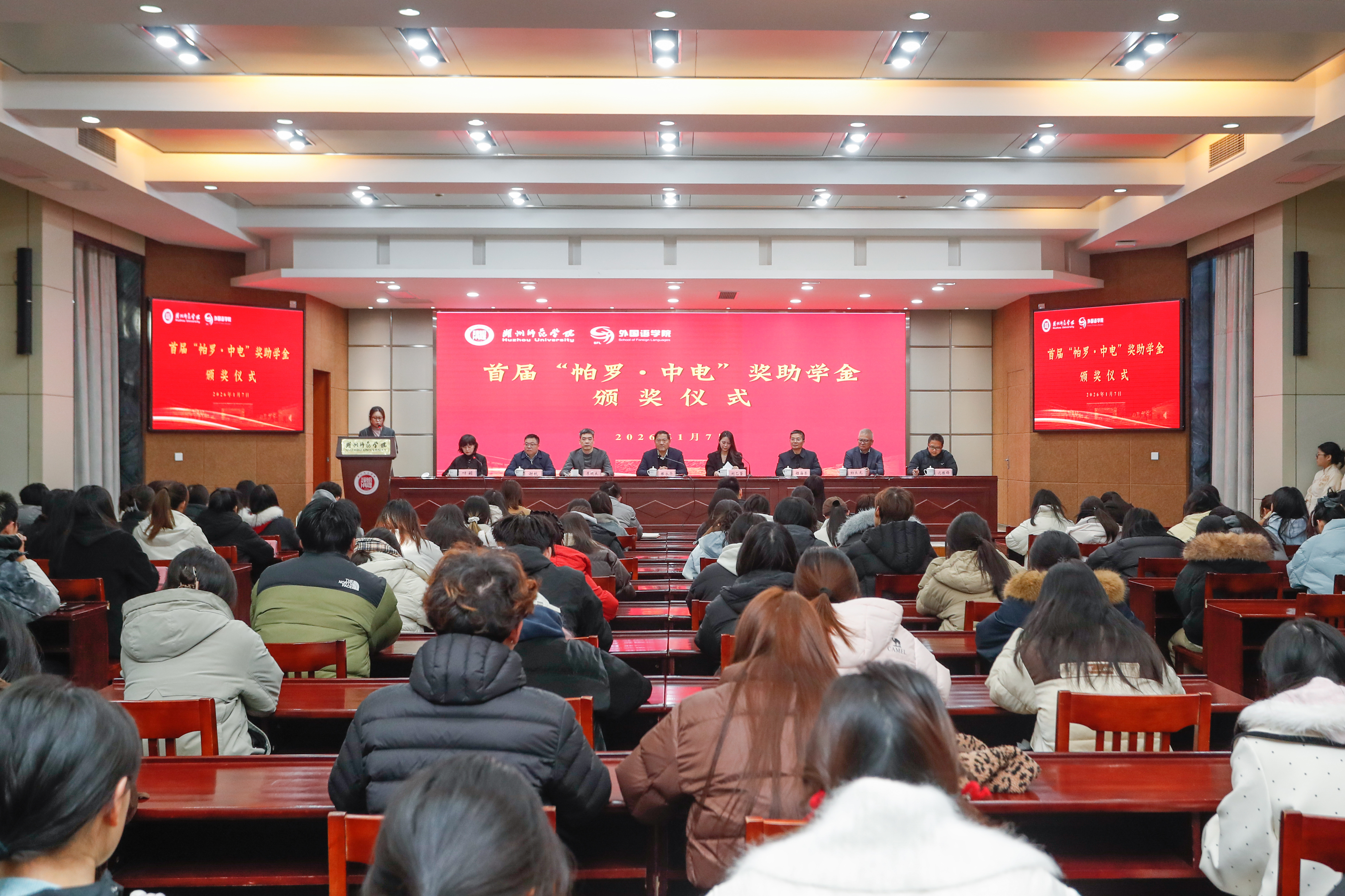 据悉,“帕罗·中电”奖助学金于2025年4月在学校109周年校庆之际签约设立,每年20万,连续资助五年,旨在支持外国语学院学子在访学交流、深造升学、学科竞赛与励志成才等方面追求卓越。此次颁奖仪式的成功举办,不仅表彰了先进、树立了榜样,也进一步凝聚了校企协同育人的合力,为学生的成长与发展注入了温暖而坚实的力量。