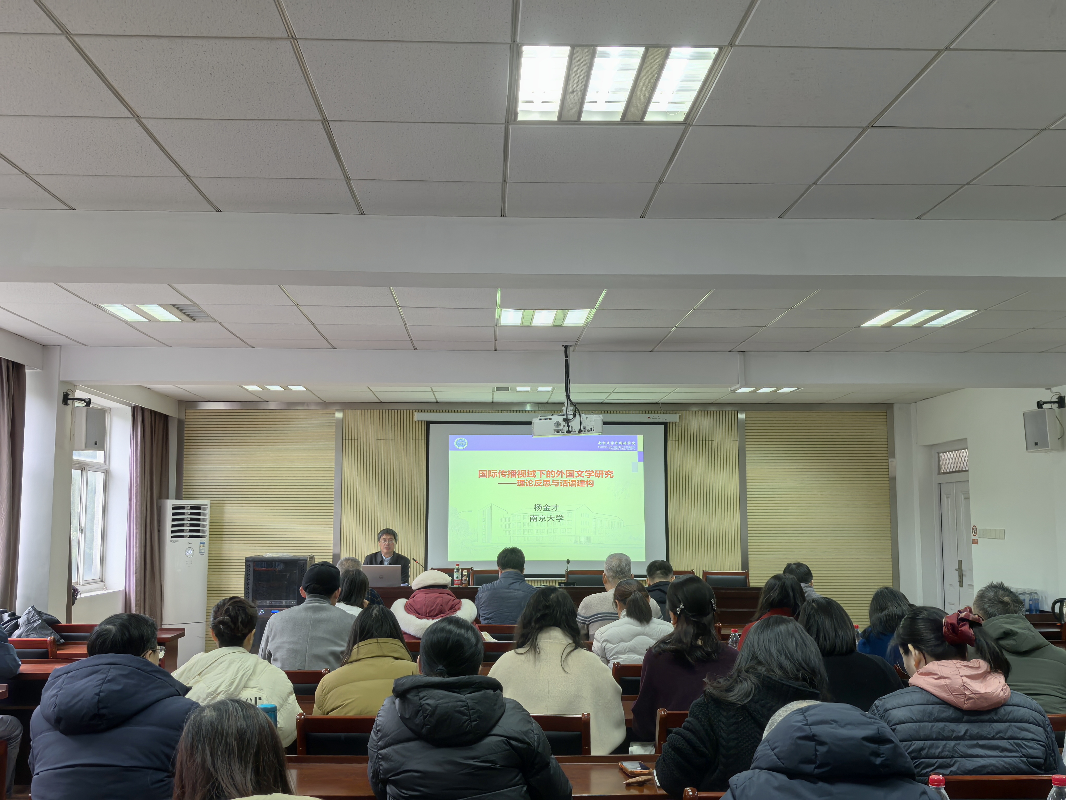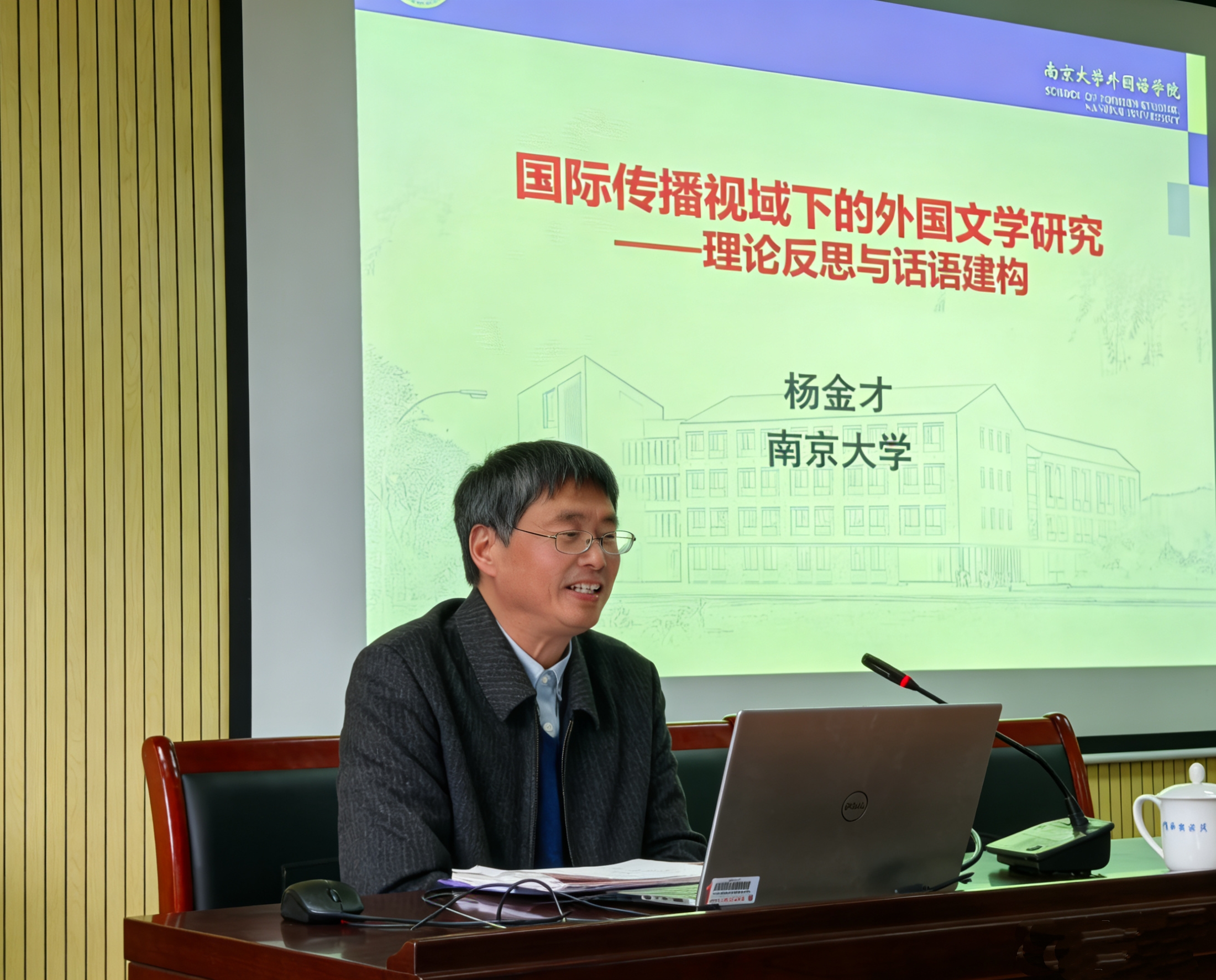 讲座聚焦外国文学研究转型、学术价值取向等核心议题。在自主知识体系构建与国际传播方面,杨金才指出,需摆脱对外国理论概念的依赖,转向以中国思想文化为支撑,构建有“我”的话语体系。杨金才强调,要反思西方中心主义一元论,国际传播具有鲜明的国家意识与价值取向,外国文学研究必须明确服务国家发展的根本目的。针对中外学术交流现状,他提出,中国学者应主动发声,积极破除国外学界对中国学术的忽视。