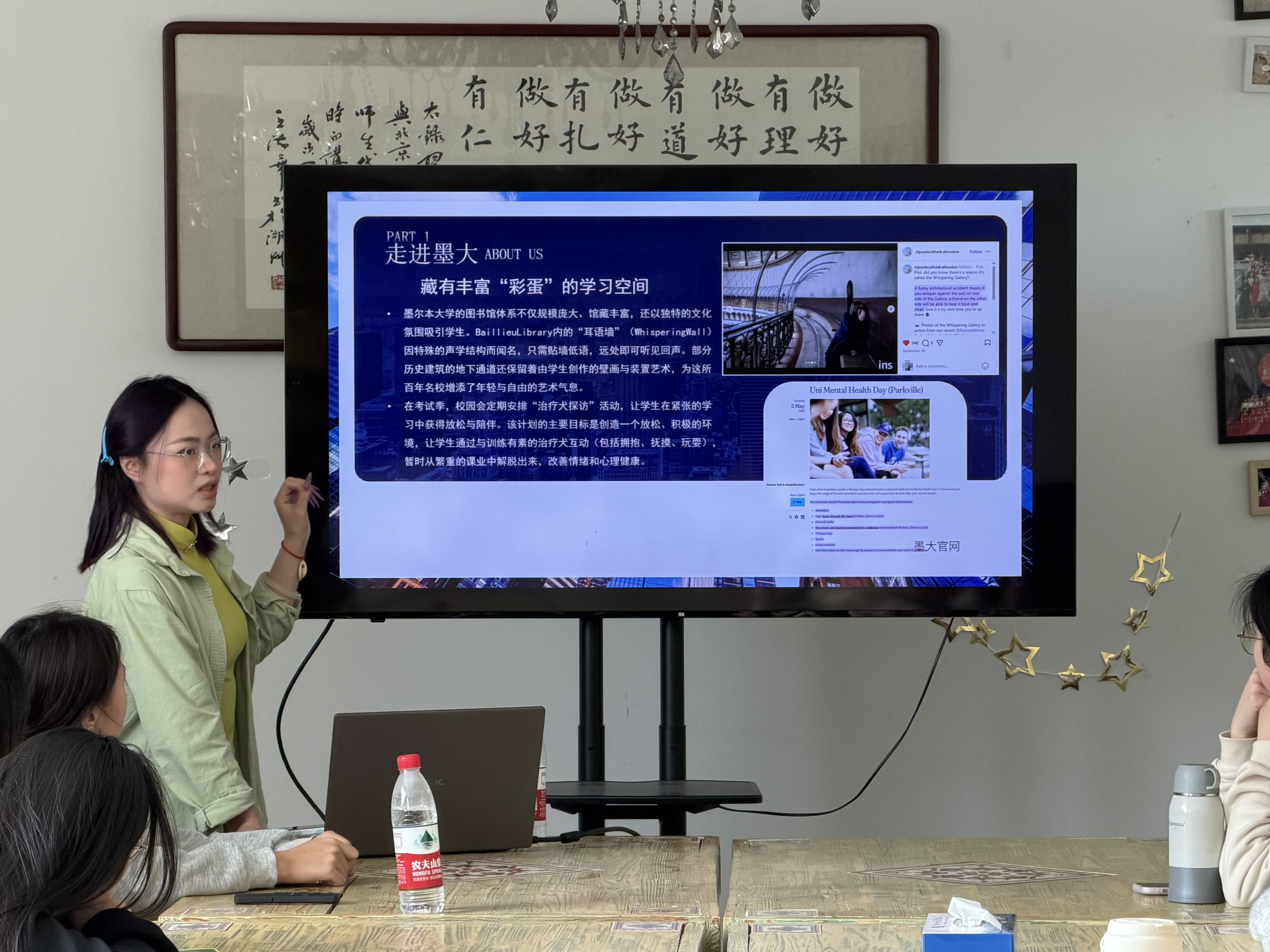 讲座伊始,主讲老师Hetty以墨尔本大学的综合实力为切入点,系统介绍了该校作为澳大利亚最著名综合性大学之一的卓越地位。通过翔实的数据与生动的案例,展现了墨尔本大学在教学质量、科研影响力、研究生教育水平等方面的突出表现。同时,老师结合学校优美的校园环境与完善的教学设施,进一步说明良好的学习条件对学生成长的重要支撑作用,让在场学子深刻感受到国际化名校的育人温度与教育深度。