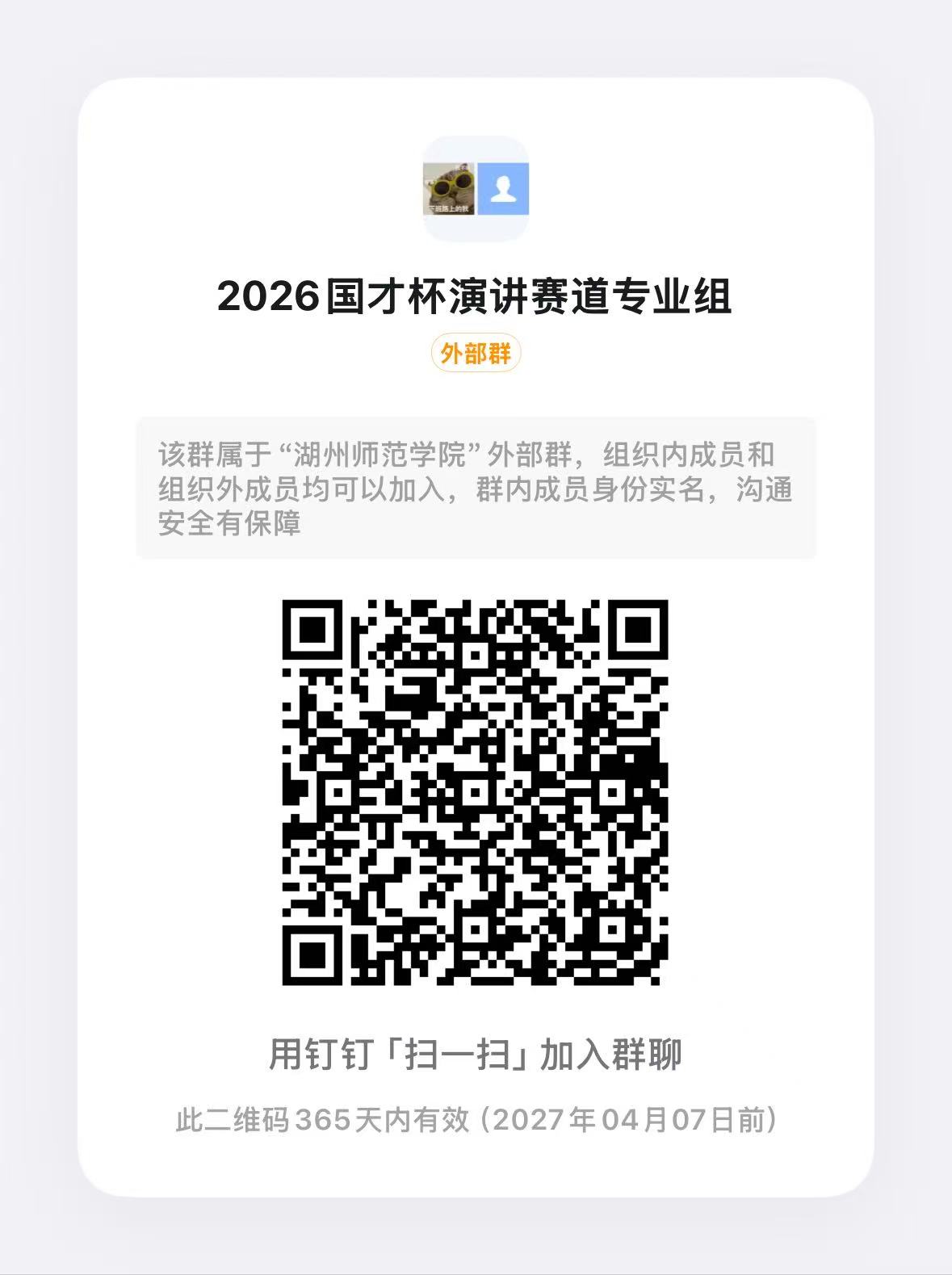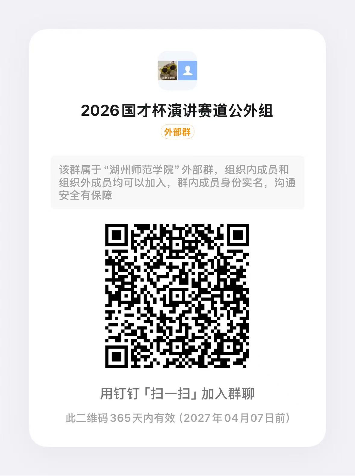 初赛形式为定题演讲,题目为China in the Garden of Civilizations(可参考外研社官方网站:参考网址:https://ucc.fltrp.com/c/2026-03-21/541241.shtml)。参赛选手须线上提交演讲视频。视频须横屏录制,画面清晰,声音清楚,全程脱稿,时长控制在3分钟至3分15秒之间。视频命名为学院班级+学号姓名,提交至指定邮箱gwyanjiang0101@126.com。