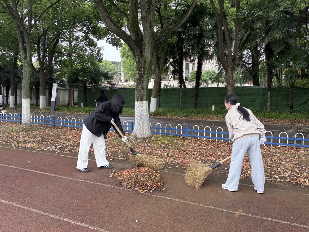 下午两点,来自各专业班级的大三学生带上扫帚、手套、垃圾袋等工具,在辅导员和学生干部的带领下,按划定区域迅速投入到热火朝天的劳动中。活动重点对教学楼宿舍楼周边、主干道、花坛绿地、运动场等区域进行了全面细致的清理。