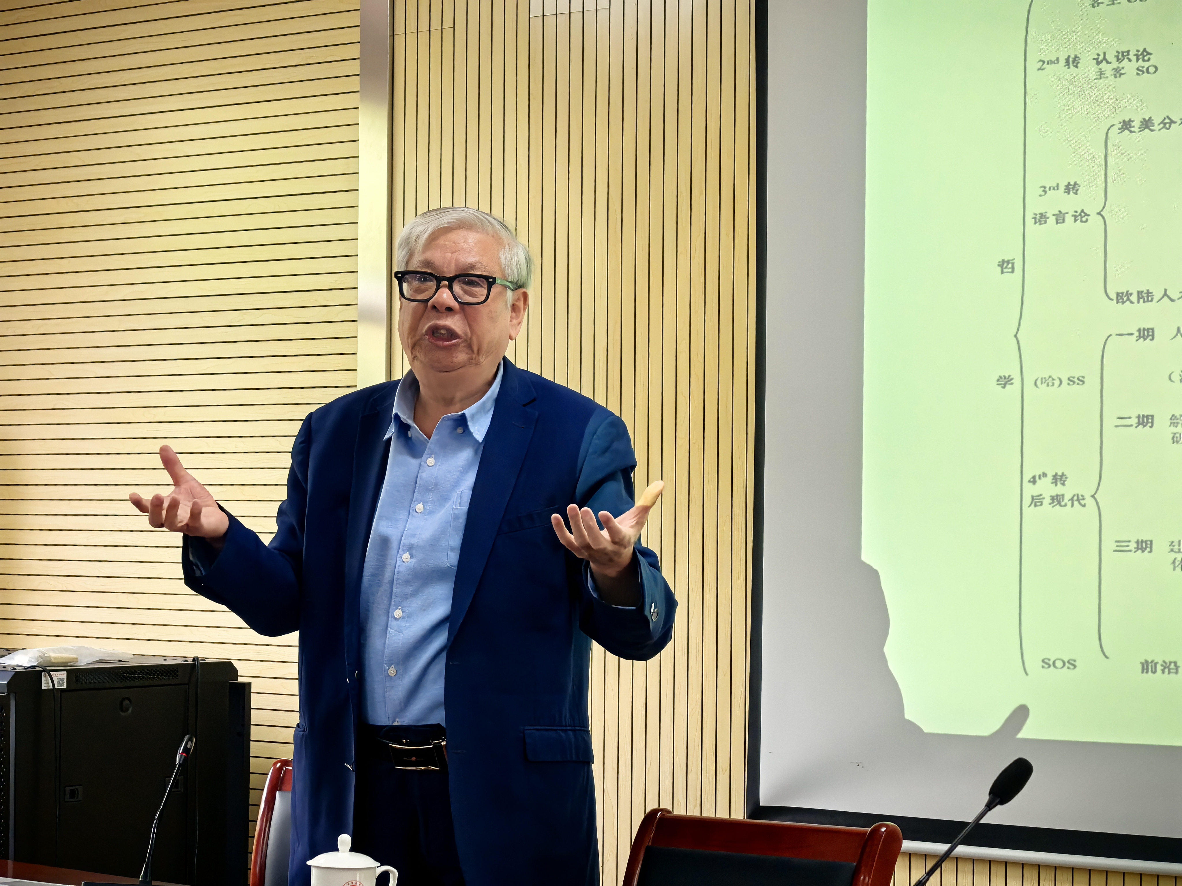 王寅首先梳理了语言学与哲学发展的紧密关联,强调了从哲学视角看待语言学及相关学科研究的重要性。针对当下语言学研究中普遍缺乏系统哲学理论的现状,王寅认为,学习哲学具有必要性;尤其是在“新文科”建设中,文史哲理应打通。他指出,语言是区分人与动物的关键,也是社会生产力、知识储备库以及民族的凝聚剂。语言的新性质是“体认性”。