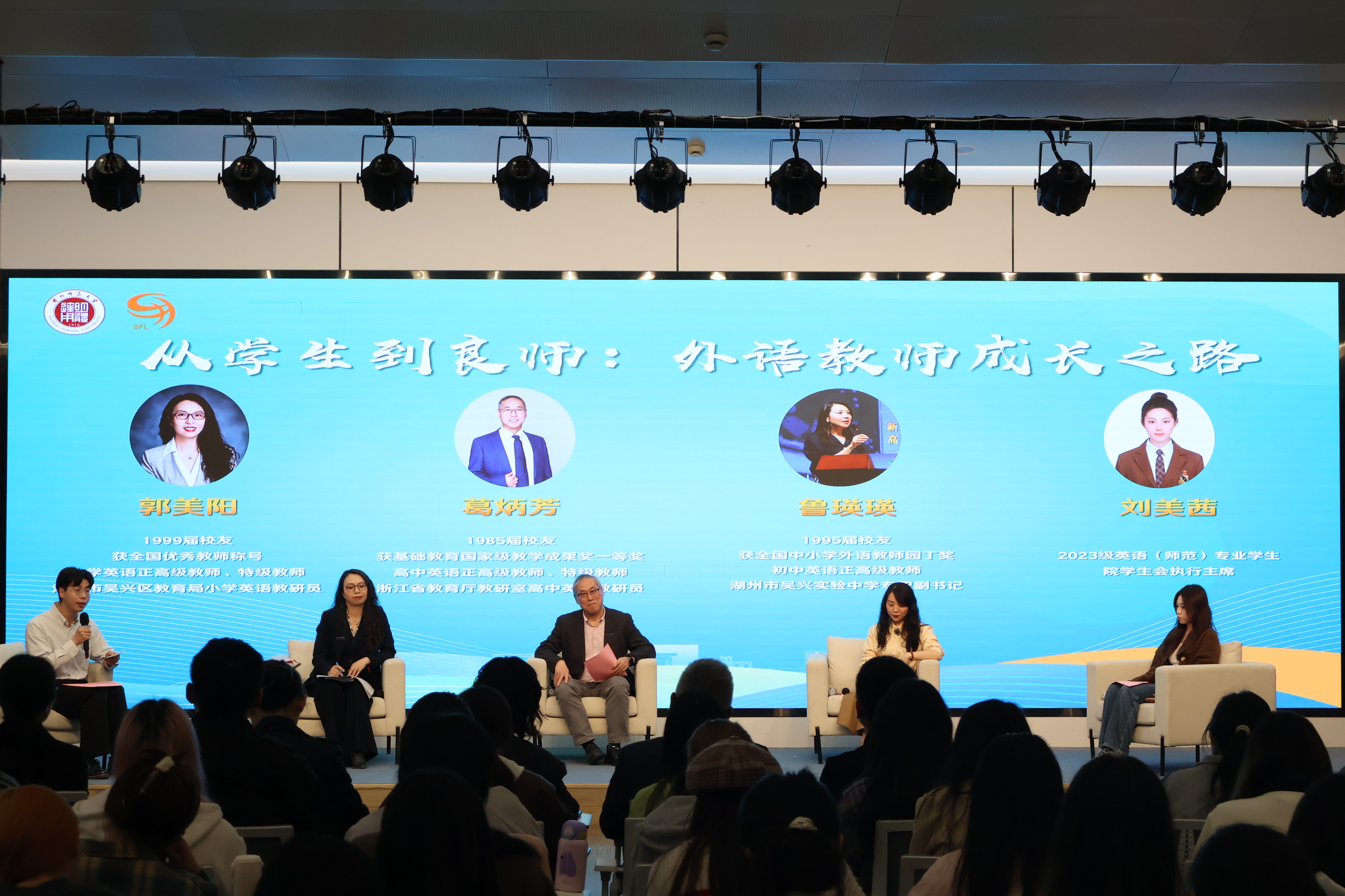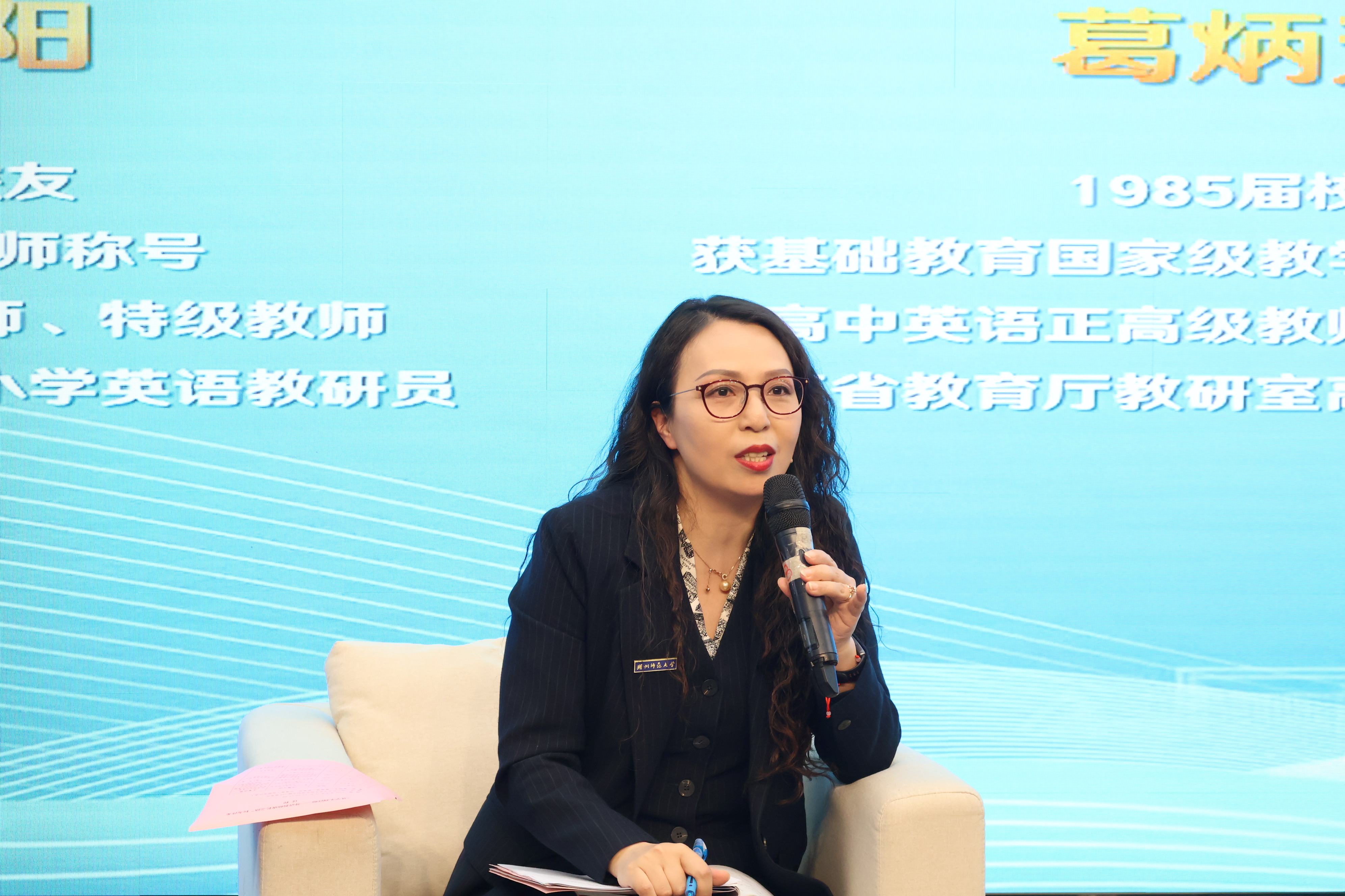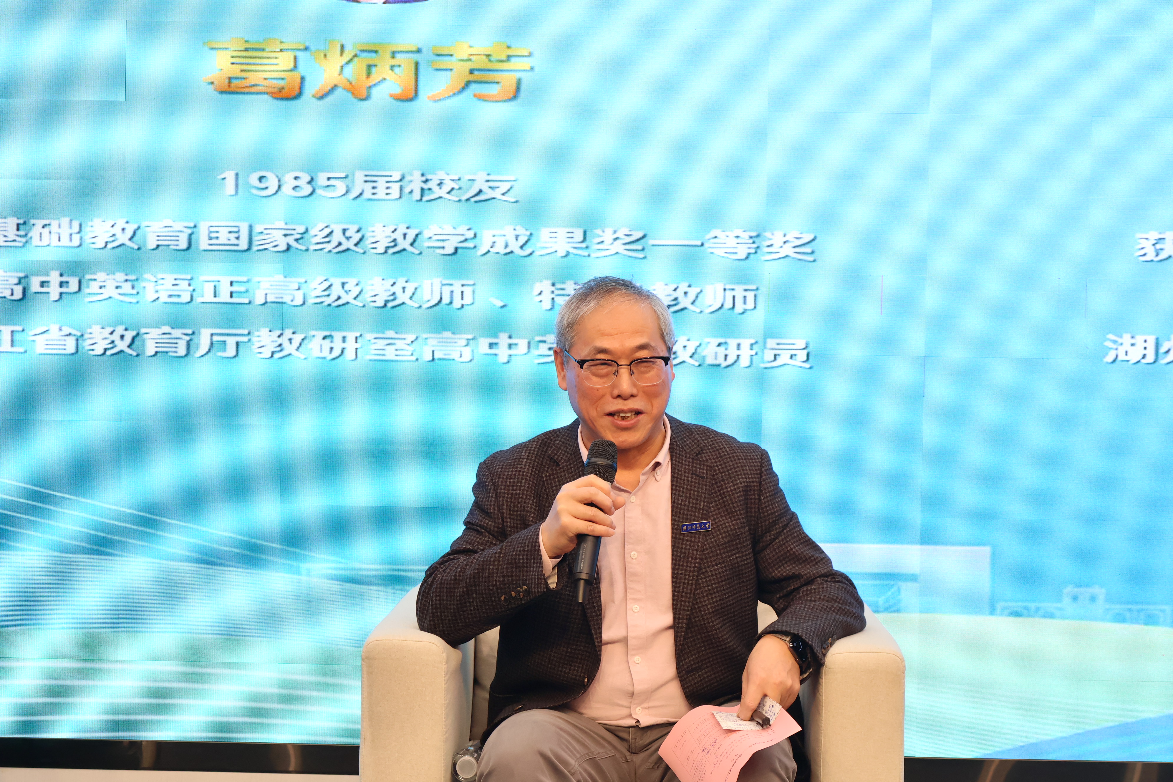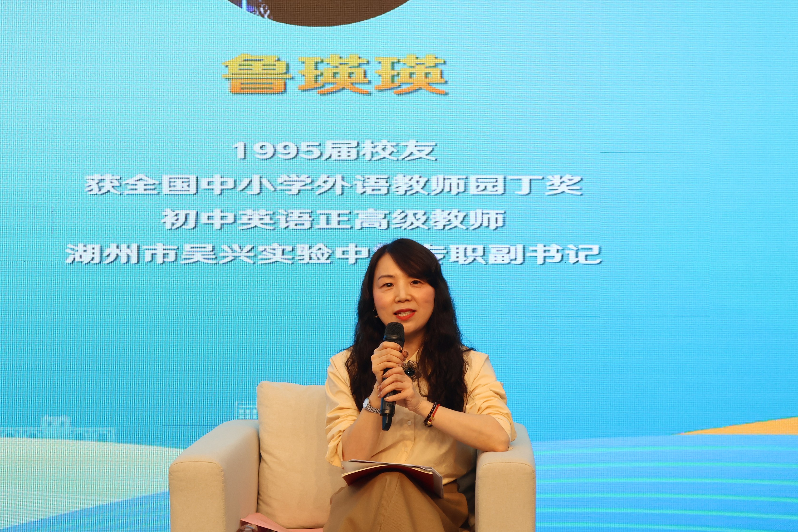 在“难忘的湖师时光”环节,嘉宾们深情回望母校。葛炳芳回忆了不带教案、将内容刻入脑海的老师,以及用BBC/VOA素材授课的听力老师。鲁瑛瑛感念精读课上和风细雨的老师与严格的听力课老师。郭美阳分享了外教引导她深耕英语教育的故事。